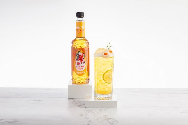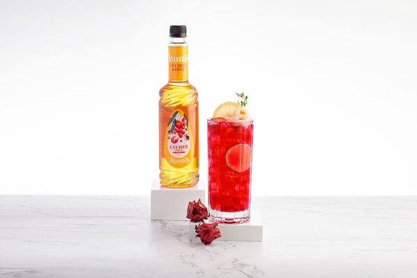 NGUYÊN LIỆU Trà hibiscus 120ml Syrup vải Aumis 30ml Đường mía Au 10ml 1 lát...