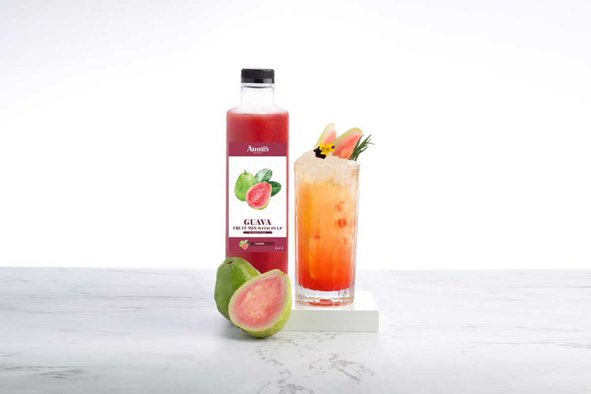 - Garnish the delicious drink when finished with pink guava and rosemary leaves. The drink will be cooler when used with Aumis aloe vera jelly.