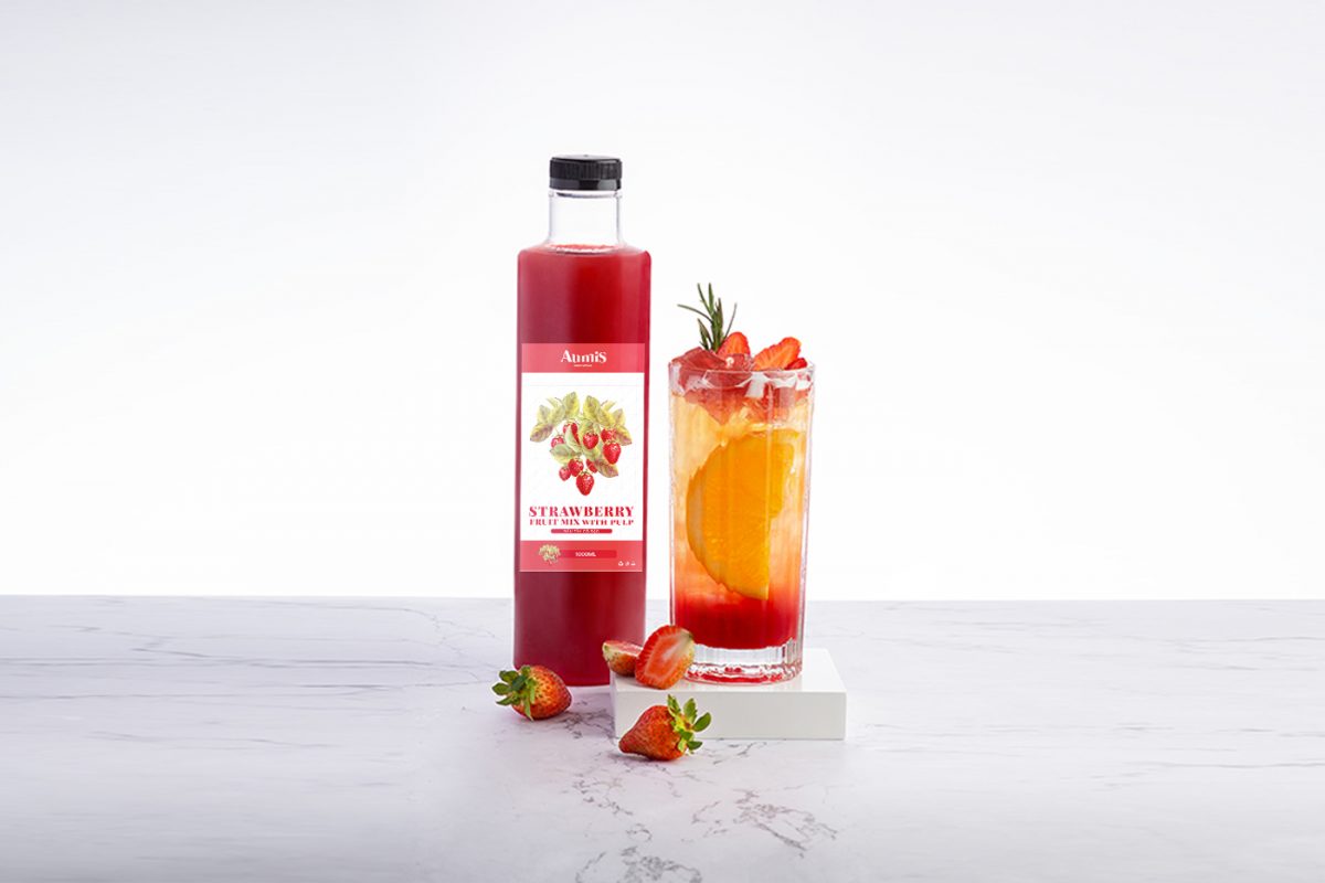 • Garnish the drink with a slice of orange in the inside of the glass with strawberry and aloe vera topping